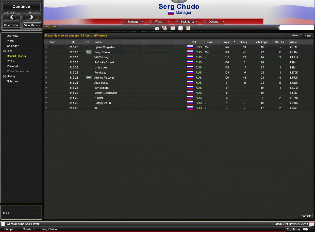 Грузия, 3-0, голы Ахиллес, ОНчег, Чудо 2 ассиста, Ахиллес - - ассист и МОМ. Литва - 2-0, голы Чудо, Джо. Ассисты Чудо и Ахиллес, Ахиллес - МОМ. Лихтенштейн 5-0, голы Ончег, Джо, Чудо, Ахиллес дубль. Ассисты Ромирез, ОНчег, Ахиллес третий раз подряд МОМ. Словения 1-2, единственное наше поражение. Гол - Ахиллес. Грузия 4-1. Ахиллес и Чудо по голу, ОНчег дубль. Ромирез 2 ассиста и МОМ. Швеция 3-2. Голы - Ахиллес дубль, Ромирез. Ассист Ромирез. В общем с отрывом от Шведов в 5 очков мы заняли в группе первое место, и поедем летом на Мир. Группа у нас простая как 5 копеек - США, Греция, Перу. Правда, чемпионат будет проходить в Греции. По рейтингу мы 7е. США - 17 Греция - 40 Перу - 48 В сборной в отборочных матчах участвовали всего-то шестеро - Лириус, Чудо, Ахиллес, Джо, ОНчег и Ромирез. А в заявку на чемп мира думаю, попадут ещё меньше - нам ведь уже по 34, и даже в этой шестёрке уже не у всех есть игровая практика. Но об этом позже. |