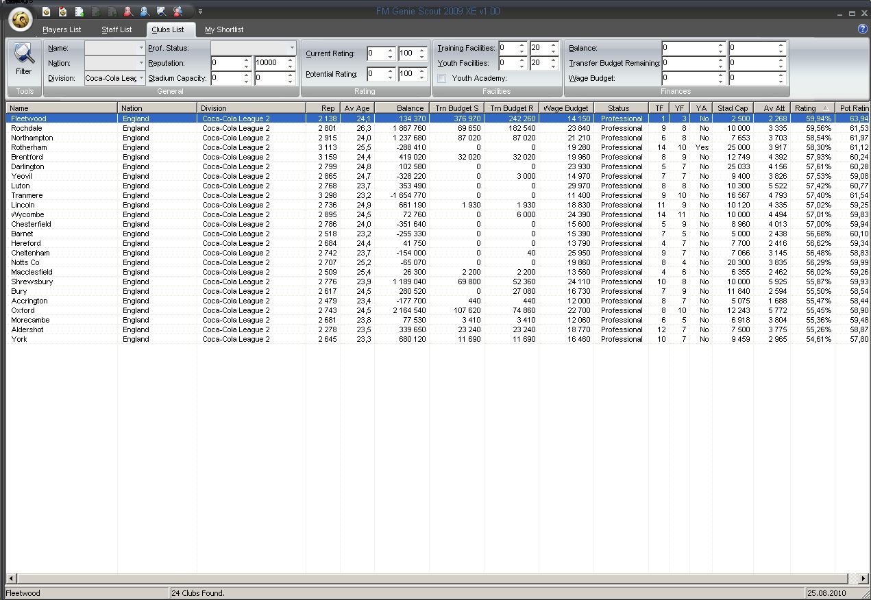 Правила игры: 1. Скаут юзаю на полную (вручную ищу не хуже, но время экономится) 2. Матчи переигрываю, если считаю для себя нужным (ну мне просто нах не надо, если ведущего на полгода уебали). В общем, игра должна приносить радость и удовольствие. 3. В остальном фэйр плей. Клуб Флитвуд Таун - стадио один из самых маленьких в конфе - 2500, из них только 500 сидячих. Задача в первый сезон была место занять в середине Лиги Blue Square North. Основные игроки клуба со скаут рейтингом около 40. Денег в клубе ноль. И их не предвидется, потому как приток с продаж невозможен - самые дорогие игроки стоят 2-3 тысячи, а в месяц убытков 15-20 тысяч. Только одна надежда - зарабатывать в кубках. В первый сезон набрал на старте с фри чел 20, почти всех старых выгнал тупо - бабок и так нет, минус сто тысяч погоды не делает, зато фонд зарплаты выправил. Лидеры лиги имеют состав - у основных игроков скутрейтинг около 50 и чуть выше. Я на этот уровень вышел только к зиме - хороших футболистов собирал по крохам. Зато после нового года сколотил таки состав, вышел на первое место в лиге весной и уже его никому не отдал, финишировав с отрывом около 10 очков. |