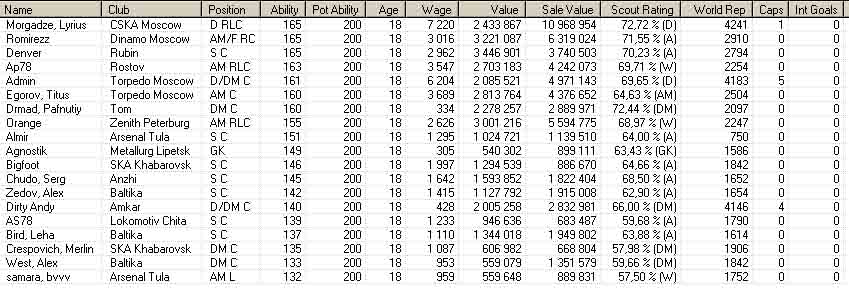 Что происходило на высшем, так сказать, уровне? Муслина выгоняют из Локо за то, что команда никак не может зацепиться за тройку лидеров и возвращает Юрия Сёмина. Локо с Семиным занимает четвёртое место. Валерий Овчинников приходит в Динамо Москва. Крылья в середине сезона опускаются на предпоследнее место. Увольняют Гаджиева. Объявляют его возможных преемников – среди них есть Антон Висложопко и Валерий Нененко. Барановский выбирает Висложопку. Мэтью Бут сказал, что всё Висложопко – фуфло, и поросился на трансфер. Крылья заканчивают сезон на седьмом месте. |