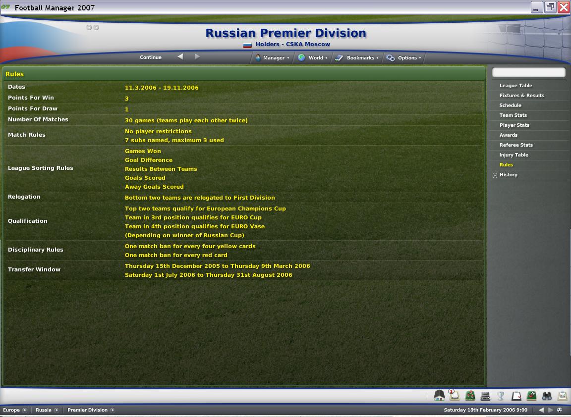 1) Россия с оригинальной формулой. 2) Россия, перенесенная в США. 3) Шотландия. В первом случае еврокубки на холидее, никаких очковых подсчетов. С Шотландией проблема с вылетом одной команды (правда, было предложение, Шотландию перенести в США, но это, имхо, перебор. Хотя можно, если будет желание). Больше конкретных вариантов не было... Так что выбирайте... -------------------- ![]() ![]() ![]() |