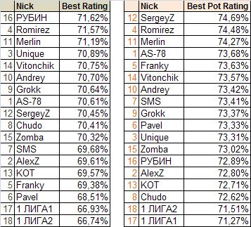 Сюда всю аналитику и коментарии. Выкладываю также файл с оставшимися игроками (в нем же разбивка по командам). 11 мая в 21-30 мск продолжим, надо будет провести еще 12 раундов.