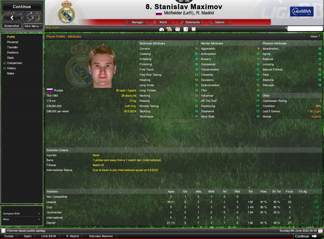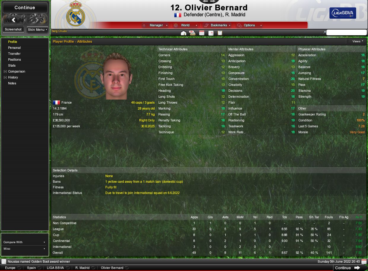 Таких как соколов в игре, кстате, туева хуча, нампример известный всем Максимов, или вот например Оливье Бернар, с натурал фитнесом меньше 8, но по жизни играет в основе на 7,5-8,0 за сезон. Это только Реал я показал. В других арсеналах не хуже.