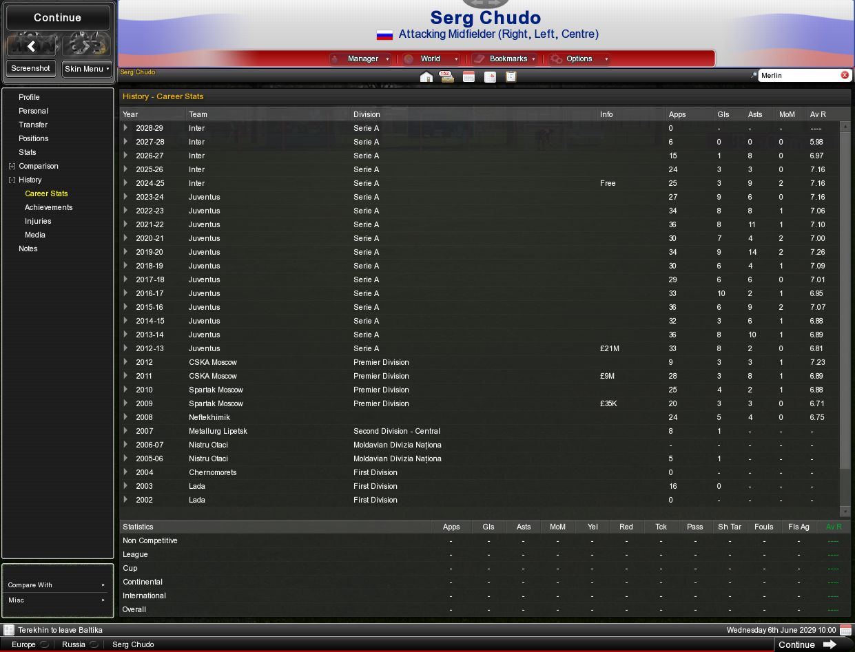 Serg Chudo Скрин карьеры Мерлина.