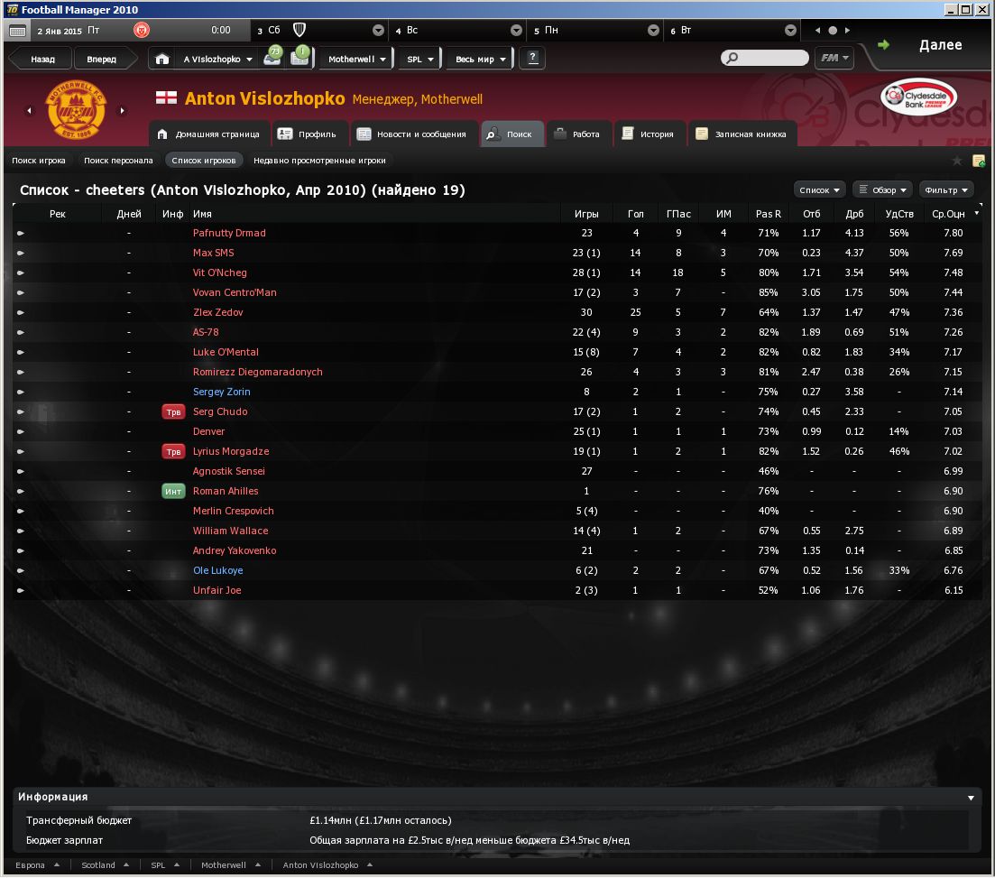 Зедова, так воспеваемого последнее время, и оцениваемого как самого талантливого среди всех прочих червяков, отдали в аренду в Виган, у которого задача – побороцца за выход в плей-офф из второй лиги. У Зедова там статус ключевого, и одновременно он самый дорогой игрок клуба. Ахиллес ушёл в Мидлсбро, статус основного. Клуб солидный. В прошлом году заняли втрое место, и в этом году у них цель – не просто запромоутится, но и выиграть вторую лигу. Чудо заарендован СтокСити. Статус – основной. Так же сток заарендовал АС-78, но статус ключевого игрока. В прошлом году клуб вылетел из вышки, и в этом у него цель если уж не выиграть лигу, то запромоутится надо полюбас. Да с такими двумя арендами если не выйдет – болельщики не простят. Джо уехал в аренду в Барнсли. Клуб средненький, задач никаких не решает, но Джо там канает за ключевого. Престон, тоже такой же середняк, как и Барнсли, арендовал Зорина, как основного. Ну и последняя аренда - Волос уехал в Ноттингем, как основной. Ноттингем будет пороца за промо-плей-офф. Вонан, вылетев из премьер-лиги, так никуда и не ушёл из клуба (напомню, Петерборо), клуб ставит перед собой задачу непременно вернутся в вышку. Вован на это купился, и решил больше не бузить, а засучив рукава, пахать. Денвер, наш горемыка, таки устроил свою судьбу, его купила Астон Вилла, у которой задачи попасть в еврокубки. Статус – ротация. Как мы помним, в Астон Вилле у нас обитает СМС, который тоже на ротации. У остальных – без перемен на 1 сентября. |