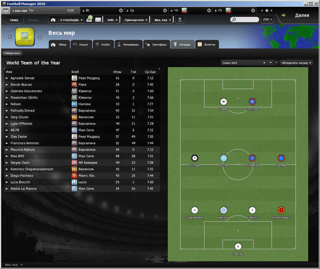 Клубный чемпионат Митра выиграл РеалМадрид, поимев какието отстои 5-0 и 6-0, где в каждом из матчей Зедов оформил покеры. За что и был признан лучшим игроком турнира, встав в один иряд с Пафнутием.