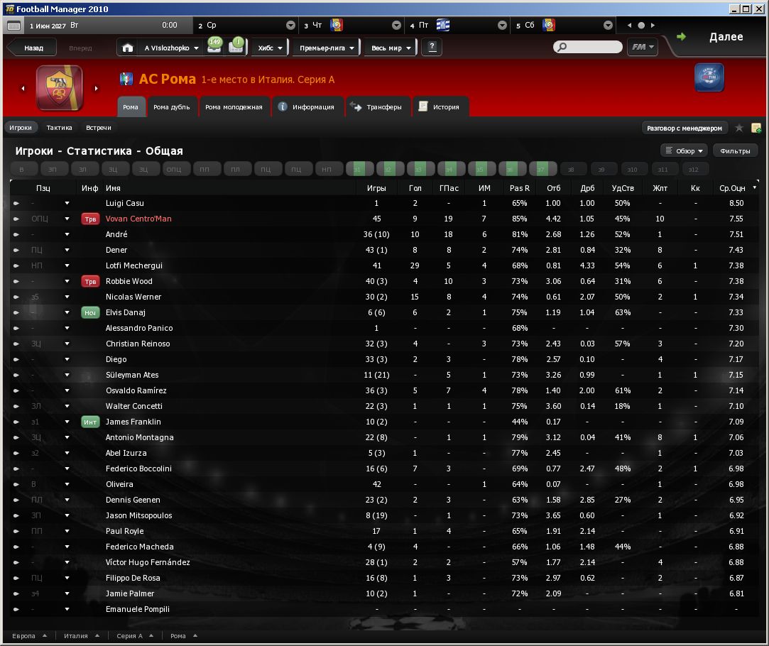 у Вовы феноменальный приход в Рому. С Вованом команда смогла сделать то, чего не могла добиться с 2001 года, то есть 26 лет - она стала чемпионом! Опередив Ювентус, главного фаворита, аж на 10 очков!Вован проводит своё один из лучших сезонов, лучше было только в Зените и в первый год в Реале, но это было аж 13 лет назад, в 19 лет.
