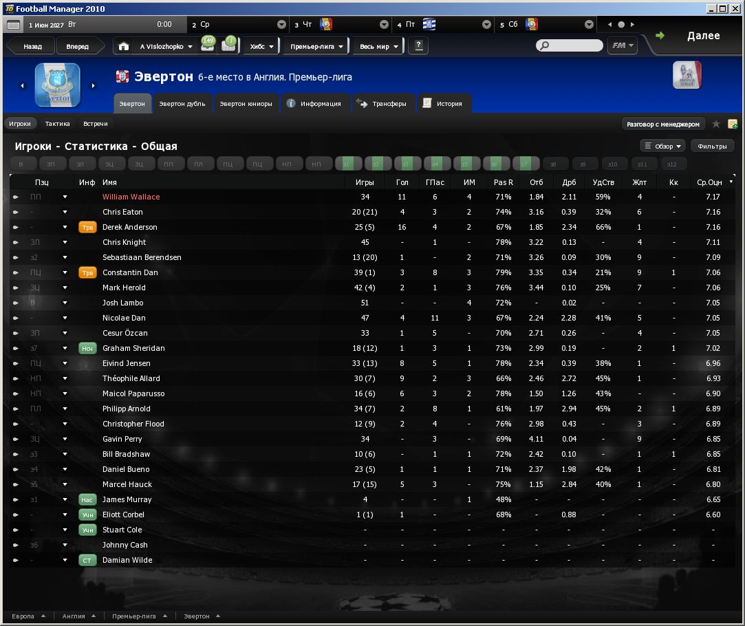 Тут много сенсаций. Ну, во первых возвращение МЮ в тройку лучших спустя пять лет - знаковое событие. Болтон Вондерерз, впервые в своей истории поднялся на второе место -тоже событие. Эвертон, впервые за 8 лет, пролетает мимо лиги чемпионов, и занимает аж шестое место. Вся команда сыграла плохо. Воллос по прежнему в клубе лучший, это заметно даже невооружённым глазом Эскизы прикрепленных изображений |