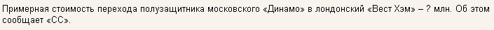 http://www.football-hockey.ru/48_260/article_8849.shtml Любе Размоски, тренер «Илиндена»: «Игра корректная и честная. Арбитры отсудили хорошо. С учётом важности встречи, результат реален». PS. В Гиннессе есть, я проверил. -------------------- |