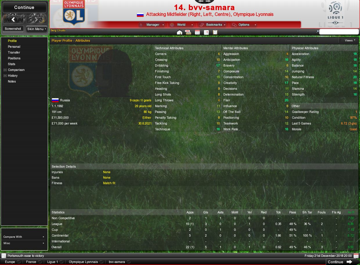 Мерлин начал сезон не очень. Волендам идёт на 11м месте. Возможно, это из-з-а того, что матчей стало в 2 раза больше из-за еврокубков, и игроки пока к этому не очень готовы, не знаю. Однако отборы Волендам прошёл успешно. Тирана 2-0 и 9-0 и Мальмё 3-1 и 3-0. Группа досталась тяжелая, МанСити (считай главный фаворит турнира), Олимпиакос, Галатасарай. Понятно, что МанСити набрали 18 очков из 18, а вот остальным Волендам здорово попутал карты. Все 3 команды набрали по 6 очков, и Волендам хоть и не прошёл дальше, из-за худшей разницы заняли последнее место, в группе запомнился победами дома над Глатасараем 1-0 и Олимпиакосом 2-1. Мерлин к желанию покинуть клуб добавил нелюбовь к менеджеру Эскизы прикрепленных изображений |