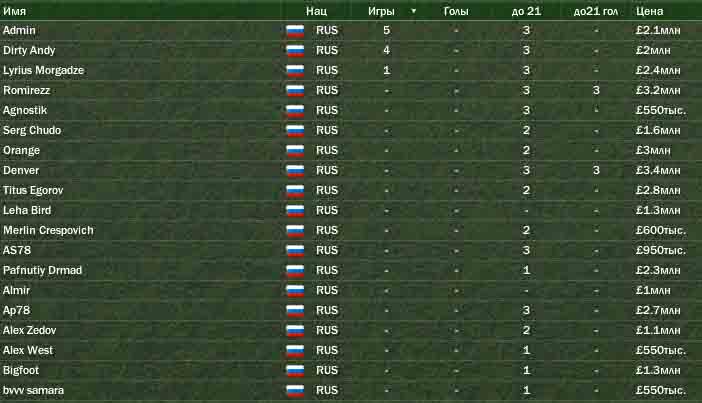 Динамо. Вы будете смеятся, но Ромирез с 9-ю мячами стал лучшим бомбардиром этого клуба. Не лидер клуба. В общем, типа Егорова – немного прибавил, основной игрок уже всё-таки как никак. Динамо на 6-м месте. Ростсельмаш – прогрессирует – 5-е место. Ап78 – играл много, но бестолково. Балахнина как-то спросили, чё он его ставит постоянно в основу? Балахнин ответил, что в будущем из Апа вырастет звезда, поэтому ему надо играть. В общем, никто ничего не понял. Зато Ап счастлив. Зенит – бронзовые медальки. У Оранжа ситуация почти такая же как у Апа. Играет плохо, но зато постоянно. Одна разница всё же есть – в конце сезона Оранж заявил, что Зенит, Петржела, и Питер - срочно должны катиться в одно место, иначе такой красавец как он тут подохнет. Вроде всё понятно, но есть один настораживающий момент – недавно в прессе проскочила мулька, будто Оранж заявил, что конракт у него плохой, отсюда все проблемы. Посмотрим, как это повернётся на следующий сезон. Спартак – серебро. ЦСКА – чемпион, и Лириус – один из Лучших игроков команды, и тэдэ и тэпэ. Назван в сборной года, и дебютировал за Сборную России. В ощем, крут всяко. И не бухтит, как некоторые. А чё, собственно, бухтеть?. В финале кубка Росиии играл Сатурн (чемпион первой лиги этого сезона) и Томь, как я уже упоминал. Сатурн выиграл, как понимаете. Энди и Админ вовсю играют за Сборную России. Россия, конечно, на ЧМ не попала, а вот в отборочных матчах они играют. Энди от усердия даже красную карточку один раз схлопотал, за что отбывал одноматчевую дисквалификацию. |