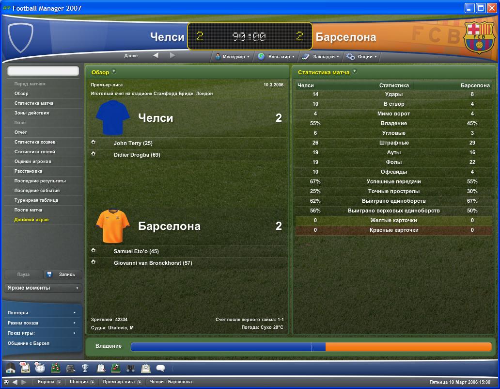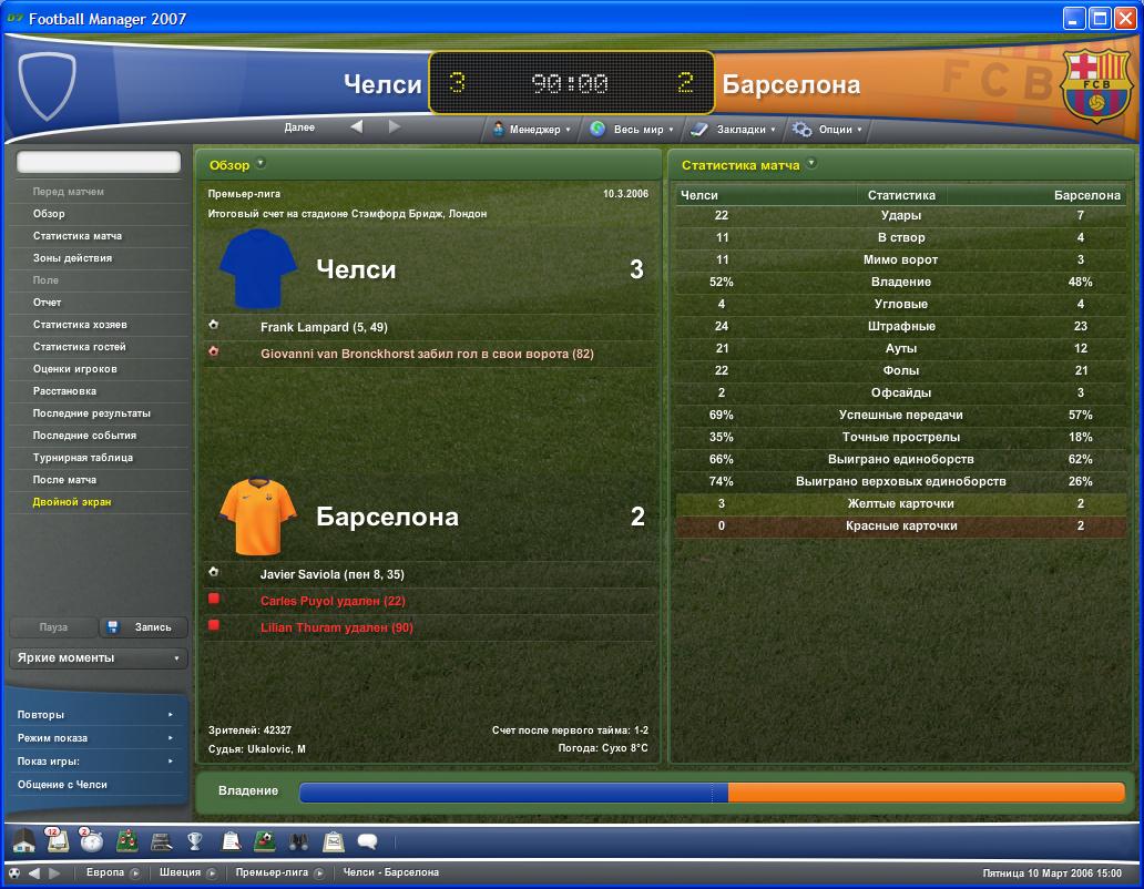 выбраны Челси и Барселона. первые 2 матча я за Челси, Вест за Барсу, потом наоборот. будем выкладывать итоговые скрины после каждого матча. сегодня сыграем по 2 матча каждой командой,итого 4. завтра еще по 2 матча каждой командой, итого еще 4. -------------------- Это будет сезон Паризи! (с)