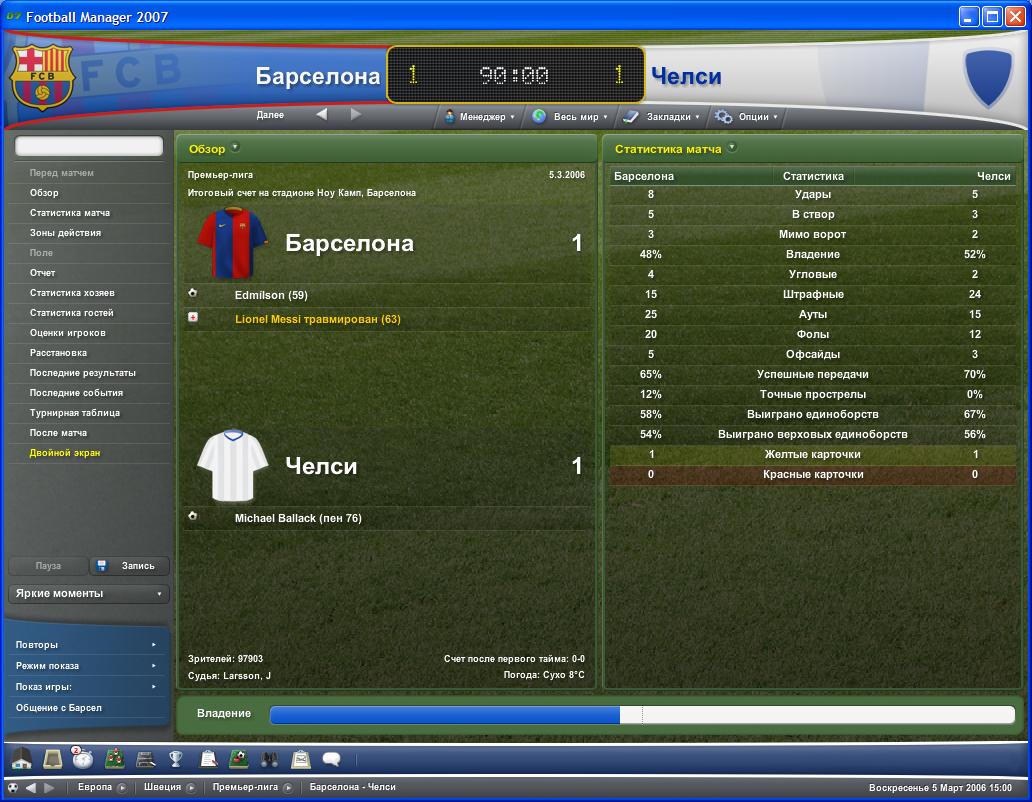 фантастическое по накалу противоборство двух тактических гениев, игроков двух поколений, показало, что есть еще порох в пороховницах!!! 4 матча и абсолютное равенство по всем показателям. Любопытно, что когда я играл за Челси, а Вест за Барсу мы обменялись победами. Когда я взял Барсу, а Вест Челси, в обоих поединках были зафиксированы упорные ничьи Эскизы прикрепленных изображений -------------------- Это будет сезон Паризи! (с)