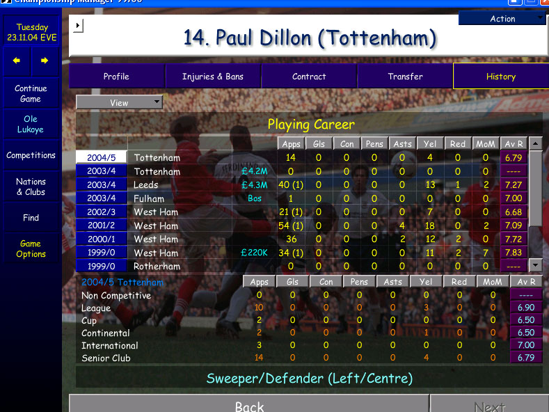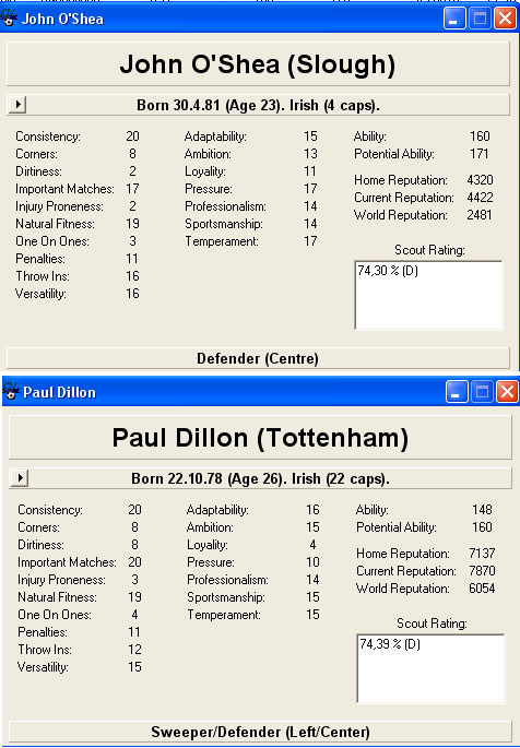 А в нижших дивизионах играть на равных не получается. СМ-Скаут у меня появился уже после выигрыша конференции... вроде как к концу третьего дивизиона. Он помогает ускорить процесс поиска игроков - не более того. Абилити и потенциал абсолютно не были в СМ3 критичными понятиями, ибо двадцатка в технике, дриблинге, пэйсе, стамине и акселерэйшене Скотта Хакерби с потенциалом 60 давала такой же эффект, как скажем Замбротты с потенциалом 192. Оценки они получали одинаковые 8-9-9-10-9 и голов и передач делали дофигища оба. И ваще в слабой лиге игрок аб/пот 25/200 - мертвяк полный, он никогда не прокачается без репы клуба и даже фасилити и тренера не помогут, а игрок 25/25 с хорошими скилами очень даже. Не так стало тока с СМ4.