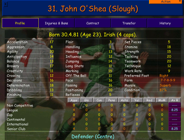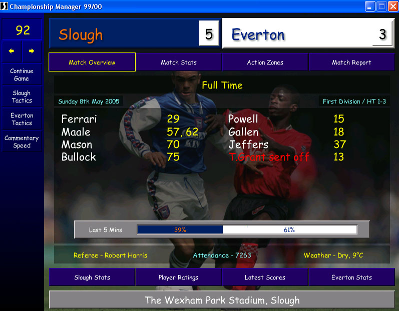 Тактика у меня далека от идеала. Все импакты и свиньи я юзать не стал, хотя думаю, что за полгода состав бы под них перепостроил (продал бы лишние позиции и купил бы нужных). Уверен, что резалты проверенными тактиками были бы гораздо лучше. К сожалению, засунуть сразу Слау Таун в вышку не получилось