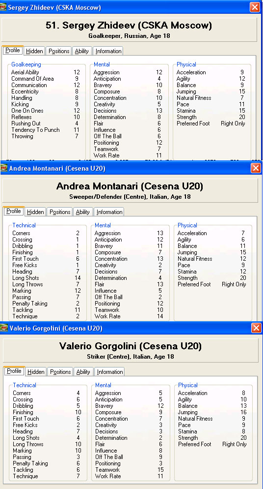 И вообще чего ты прикопался к этой силе? Я не знал, что есть характеристики зависяцие от возраста. Если это действительно так, то надо на стадии генерации поставить всем возраст ещё и возраст 30 лет, ввернуть нужные 20-ки, а потом вернуть в эдиторе сейвов возраст 17 лет. Характеристики зависящие от возраста упадут вместе с возрастом.