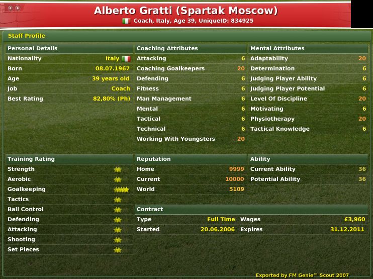 Что сделано: ВЕСЬ стафф во всех клубах Суперлиги (кроме - "Ромы" - по просьбе Чудо там все CA/PA поставлено 190/190: "Лацио" - мама миа, я просто забыл про свой клуб