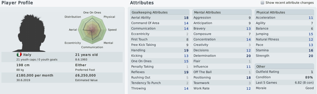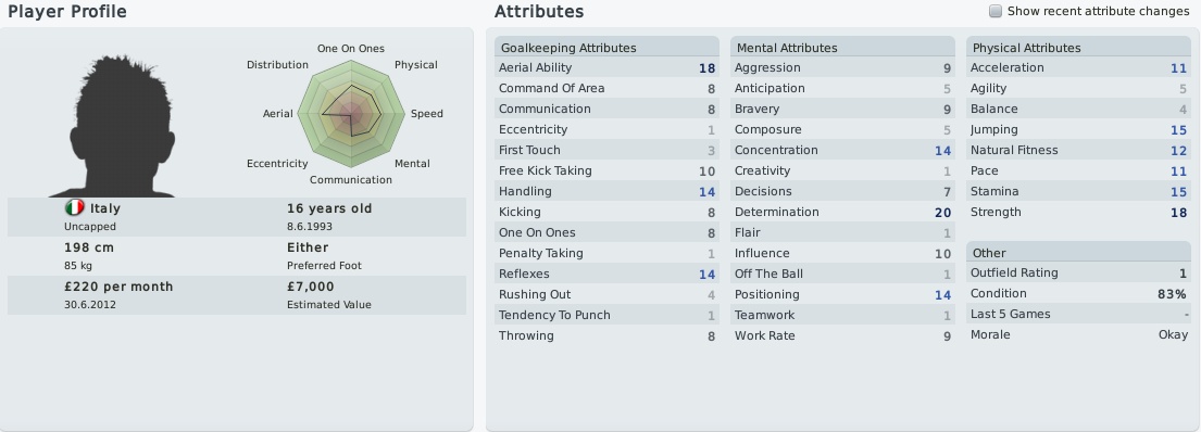 Ещё одна группа (Goalkeeping Attributes) включает в себя специфичные навыки для кипера. Но тут, в теории по-крайней мере все просто - эта группа целиком перекрывает 4-ую группу у полевых игроков.