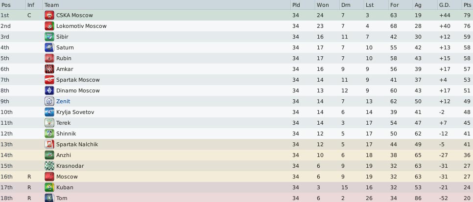 По итогам в целом отвратительного сезона удалось поднять Зенит только до 8 места. Из позитива - победа над Спартаком, ну и в общем все.