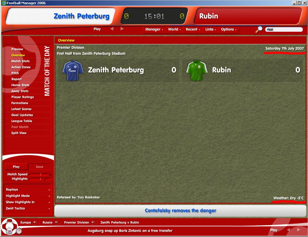 играл 2 сезона 4-4-2 немного видоизменённую. а тут из-за форс мажора была нехватка защей. решил сыграть в 3ри защитника (впервые в фм06 кстати!") тактику было подкручивать лень. воткнул дефотную 3-4-3 атакинг и раставил игрочков эксперементально. в итоге разделал кэпок 10:0 нам они забить не смогли поэтому гол престижа затолкали себе. игроки их видимо вышли на поля с костылями.