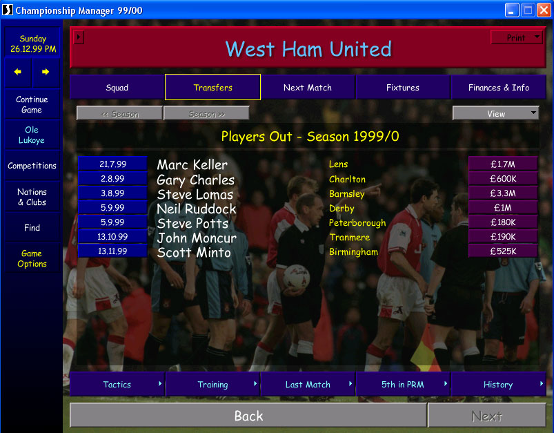 У меня загружены все лиги на максимуме и активность клубов всех стран просто фантастичная, а ещё, если ты помнишь, в СМ 99/00 была такая особенность, что при занесении игрока в шот-лист его тут же начинают хотеть другие клубы, а купить вышеупомянутых с контрактом манс-ту-манс я не смог, т.к. у меня элементарно не было ни разу столько денег, сколько южноамериканские братья просили.